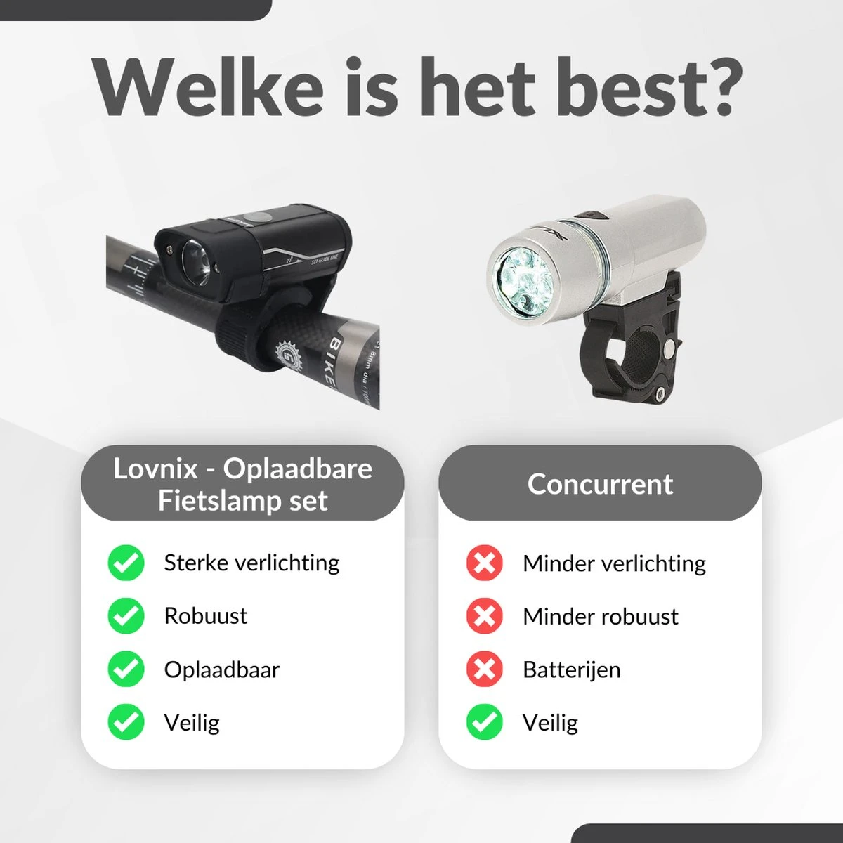 Bent u op zoek naar krachtige fietsverlichting die zonder vervelende batterijen functioneert? De Lovnix oplaadbare LED verlichting voor de fiets is wat u zoekt. Deze krachtige verlichting biedt genoeg licht om ’s avonds en ’s nachts duidelijk zichtbaar te zijn. Dit zorgt ervoor dat u rustig over straat kunt zonder zorgen over veiligheid en zichtbaarheid.
